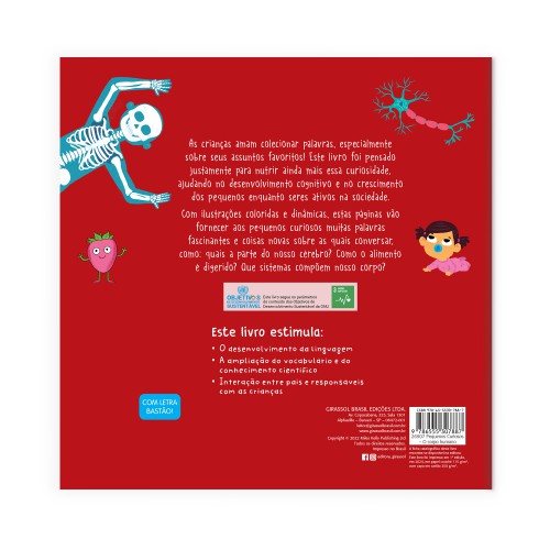 Com ilustrações coloridas e dinâmicas, estas páginas oferecem aos pequenos curiosos muitas palavras fascinantes e temas novos para explorar, como: quais são as partes do nosso cérebro? Como o alimento é digerido? Quais sistemas compõem nosso corpo?