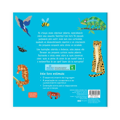Com ilustrações coloridas e dinâmicas, estas páginas vão fornecer aos pequenos curiosos muitas palavras fascinantes e assuntos interessantes para explorar, como: quais são as partes do corpo de um inseto? Como ocorre a metamorfose de um sapo? Quem são os marsupiais?