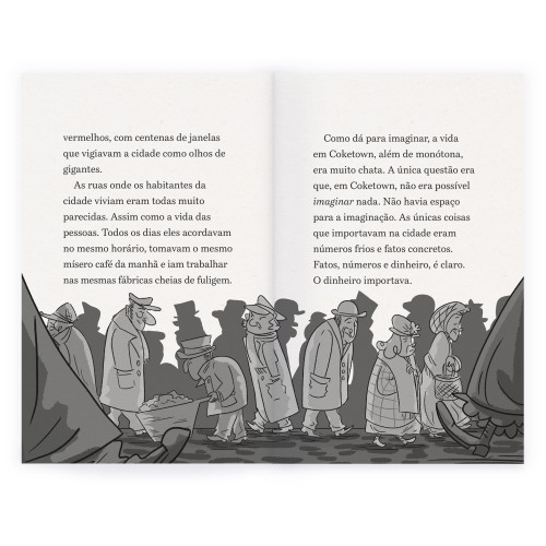 pequena cidade de Coketown. Louisa e Thomas frequentam a escola e são criados pelo carrancudo diretor e, como não podia deixar de ser, aprenderam a confiar somente em fatos, figuras e cálculos, sem levar em consideração suas emoções. O senhor Bounderby não se importa com o próximo, ele é um homem rico que vive de suas indústrias. No entanto, a vida desses personagens começa a mudar quando eles conhecem Sissy Jupe, uma garotinha criada no circo abandonada pelo próprio pai. Este é um dos mais emblemáticos romances de Dickens que deixa a sua marca, em que o autor aborda dilemas da sociedade inglesa do século XIX e traz à tona os efeitos da racionalidade desumana e do mundo do trabalho desse tempo.