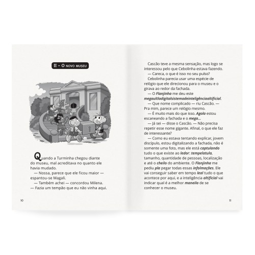 Você acha que museus são lugares chatos e empoeirados, repletos de tranqueiras e artefatos sem graça, sem utilidade ou sem sentido? Se a resposta for sim, então é hora de virar as páginas deste livro e descobrir junto com a Turma mais amada do Brasil que as aparências podem enganar! Marina, ao receber como prêmio de um concurso uma exposição em um museu, leva toda a Turminha para uma aventura envolvendo muito mistério, criatividade e coragem! Aqui, uma coisa é certa: um museu com certeza esconde muitos segredos por entre seus corredores...